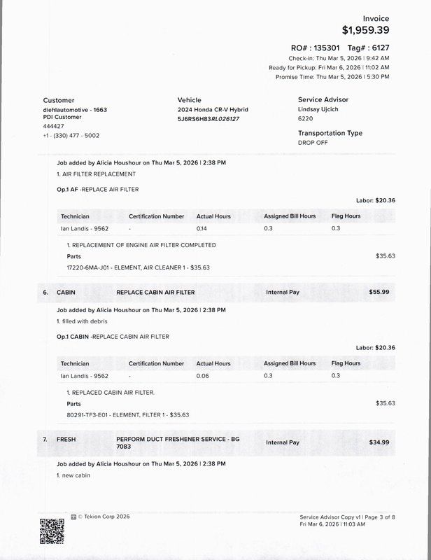 - Cabin air filter
