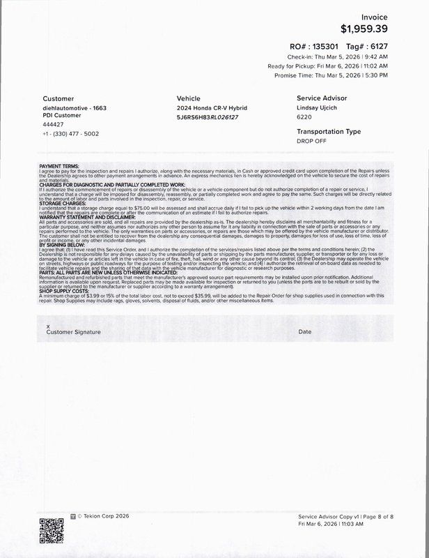 Diehl Automotive utilizes a system that generates market value pricing automatically for new and pre-owned vehicles and may cause errors, inaccuracies, or omissions. Some aftermarket additions or accessories may not be displayed properly. For accuracy, please contact the dealer for real-time, accurate pricing. A documentation fee of $490 applies and is not included in the pricing. Tax, title, and tags are also not included and must be paid by the purchaser. Some prices may include manufacturer-to-dealer offers that are not compatible with manufacturer special finance programs and/or lease offers. While great effort is made to ensure the accuracy of the information on this site, errors do occur, so please verify information with a customer service representative. This is easily done by calling us or by visiting us at the dealership.