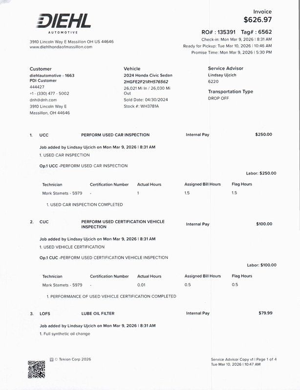 Certified. 2024 Honda Civic LX