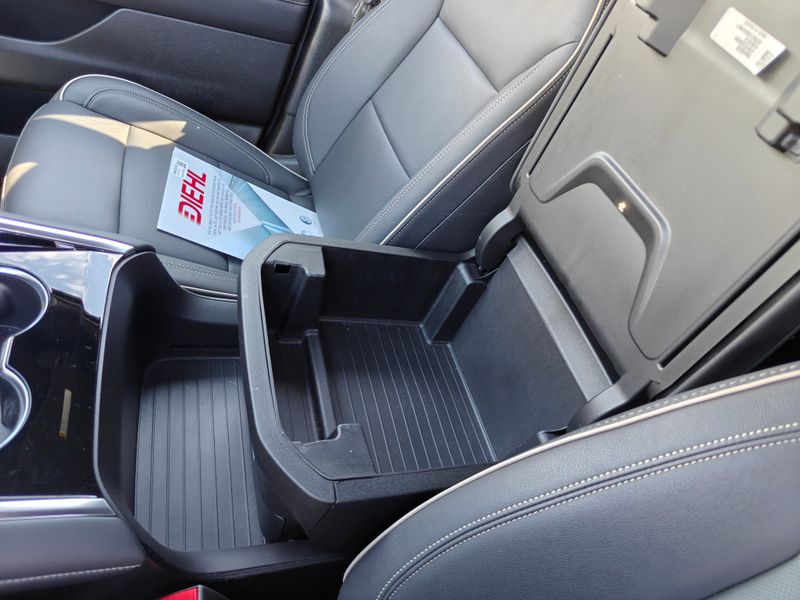 - Sliding front seat center armrest