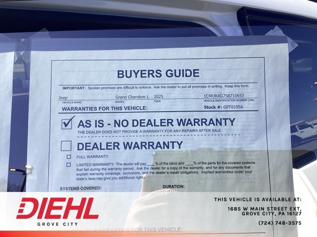 Bright White Clearcoat 2025 Jeep Grand Cherokee L Altitude X 4D Sport Utility 4WD 3.6L V6 24V VVT 8-Speed Automatic